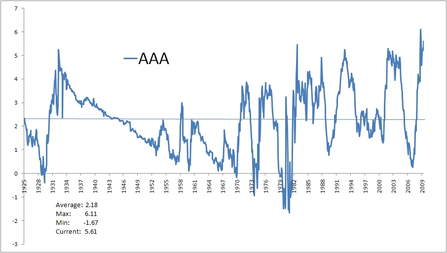 I wrote about how much risk was mispriced back in June 07, and now it seems to have reversed to the opposite (obviously more in Jan but still high). Some historical yield curve charts below – all relative to T-Bill (and yes I know there are a gazillion variations of yield curves).