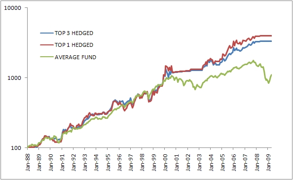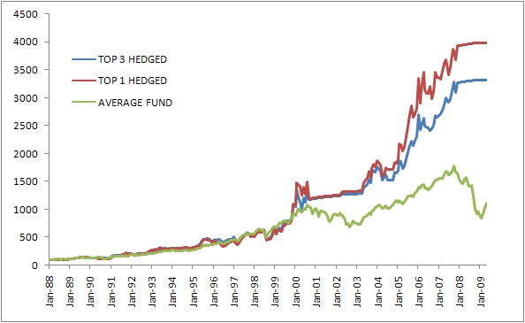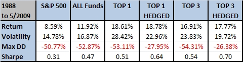 I then took the top 3 funds, equal weighted and updated monthly, based on the average rolling 3/6/12 month performance.