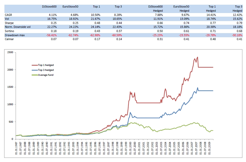 One of the benefits of writing a blog – readers from around the world take your research, verify/disprove it, improve it, and take it in new directions. Thanks to PC for the following charts. Monthly data (and from the looks of it excludes Tbill yield when sitting in cash).