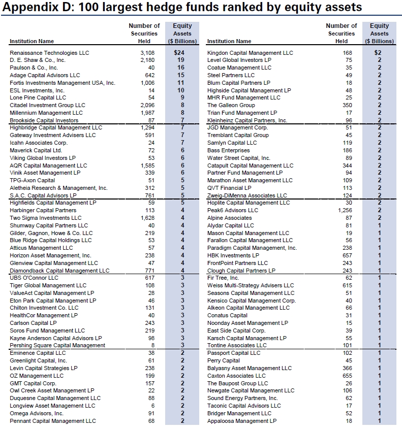 The 100 largest hedge funds by equity assets: