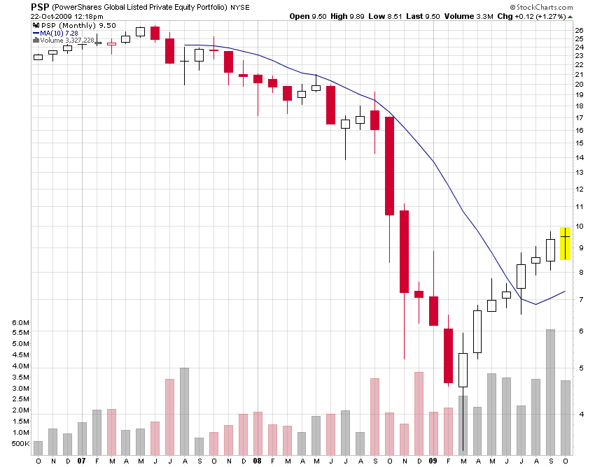 We talk a lot about private equity in the book, and a lot about why using the ETFs (ETNs) in the US doesn’t make any sense. Anyways, below is the 10 month SMA on the not-recommended PE ETF. Looks like you would have sold somewhere in the 20’s and bought back somewhere around 8. Not too shabby.