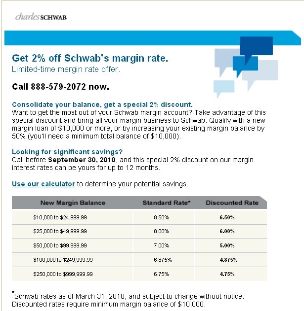 Schwab is now running ads that seem to offer great margin rates (for a limited time !!! act now!!). These are very credit card like (and predatory) in my opinion. The margin rates offered by most brokers are near criminal when compared to a consistently fair broker like IB (unbiased, we don’t use them – we don’t use margin in retail accounts and use Merlin/Goldman in private funds). (HT: Sea)