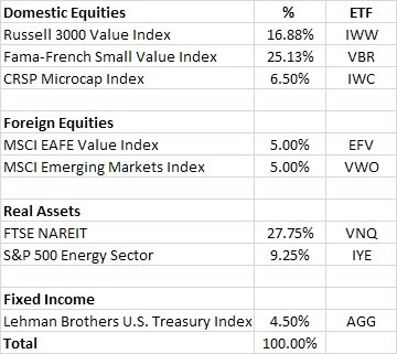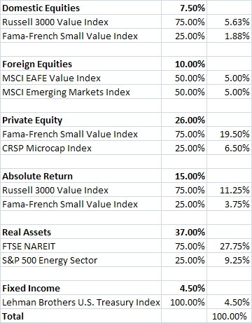 Below is a table with the suggested allocations, and the percentages those indexes would receive with the current Yale allocation.