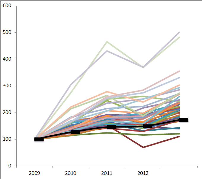 2012 68% of funds beat S&P, average fund 25.01%, S&P 16.00%, 9.01% alpha